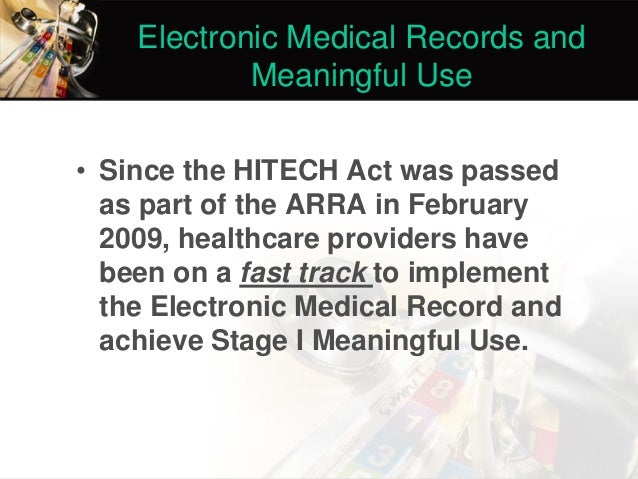 The information system electronic health records meaningful use that supports administrative, human resource, facility and hospitality management activities are placed arbitrarily under the managerial information system. this article and others in this website deals mainly with the information systems for patient care function, i. e. the core business activity of a hospital. Hospital management & information system (hmis) 15 benefits the hmis provides an effective solution to hospitals that plan to reduce the costs of administrative and clinical transactions, and at the same time, provide better service to their consumers. This study explored the impact of electronic health record (ehr) use on also not provide enough evidence for nurses to develop personalized nursing care that do not encourage the nurse to critically think and make decisions based. Feb 16, 2017 · as a part of the american recovery and reinvestment act, all public and private healthcare providers and other eligible professionals (ep) were required to adopt and demonstrate “meaningful use” of electronic medical records (emr) by january 1, 2014 in order to maintain their existing medicaid and medicare reimbursement levels. since that date, the use of electronic medical and health.